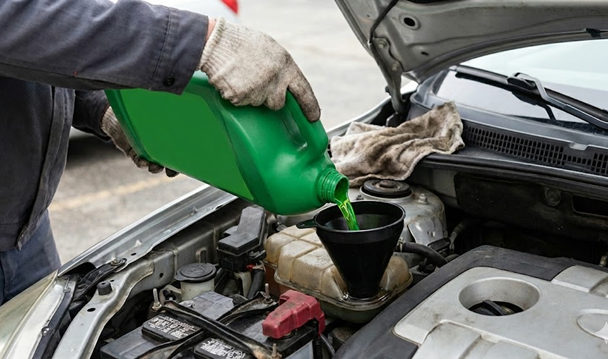 d. Running “clear water” through the cooling system would be associated with a system “flush” and would not be included.