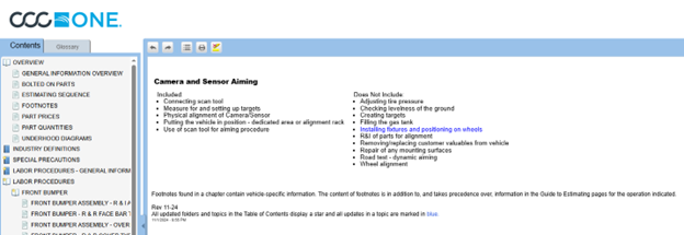 Before aiming cameras and sensors for an ADAS system, OEM’s may require specific preparation steps. The following are not included in published labor times: